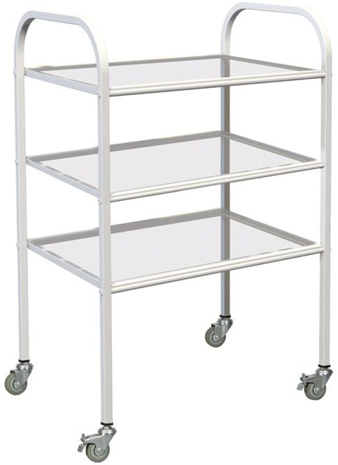 - Полки образуют три уровня хранения. Выполнены из стекла толщиной 5 мм, устойчивого к возникновению трещин и сколов, а также к обработке дезинфицирующими средствами.